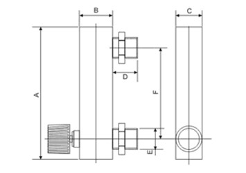 | ml/min(液體) | L/min(氣體) | A | B | C | D | E | F | |||
